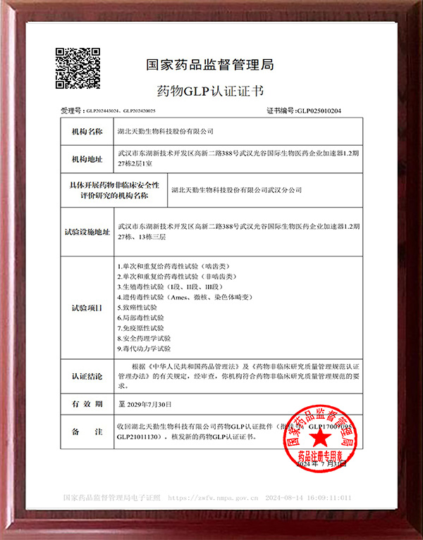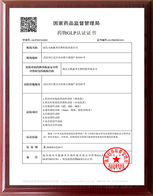 天勤生物有強大的項目承接能力,目前投入使用的有近3萬多平方米符合GLP規范的實驗室,還有約八萬平米在建的實驗場地,可開展基于猴、犬、兔、大鼠、小鼠、豚鼠等實驗動物的試驗研究;有國際接軌的技術體系,GLP實驗室滿足國內、美國FDA、歐盟OECD、澳洲TGA等國際GLP標準,并通過國際AAALAC全面認證;匯聚多位擁有20年以上項目經驗的新藥評審專家和資深GLP技術專家,確保技術方案及報告的科學性和規范性,同時骨干成員均在藥代動力學與藥理學以及毒理學領域擁有超過10年經驗,保障項目的高質量執行;3000余項專題研究、300多個新藥申報品種、100余項中外申報的品種通過中國CFDA/NMPA 、美國FDA和澳大利亞TGA的審批進入臨床或上市申請。